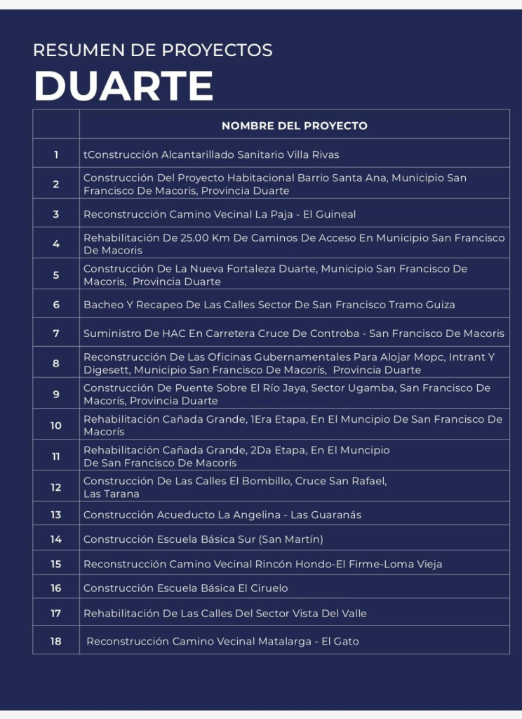 “El conjunto de estas 86 obras representa un modelo de gestión centrado en el desarrollo humano, la equidad territorial y el crecimiento sostenible de la provincia Duarte, colocando a las comunidades en el centro de la acción pública.”