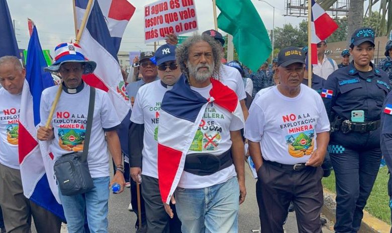 Los manifestantes recorrieron varios kilómetros a lo largo de la autopista Duarte, lo que provocó una considerable congestión vehicular, mientras portaban banderas y pancartas con mensajes de rechazo a la actividad minera.