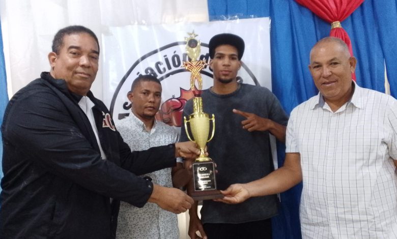 La gran copa Pescadería Wanda fue entregada por el periodista Tony Reyes al destacado atleta Brian Ortiz quien fue premiado como atleta del año de la entidad.