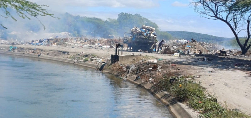 En ese vertedero, justo a orillas del canal, Ramón Soto, uno de los buzos que vive del vertedero, explica a Listín Diario que allí siguen lanzando sus desperdicios los camiones de 5 ayuntamientos, Santana, Carretón, Pizarrete, Paya y Catalina.