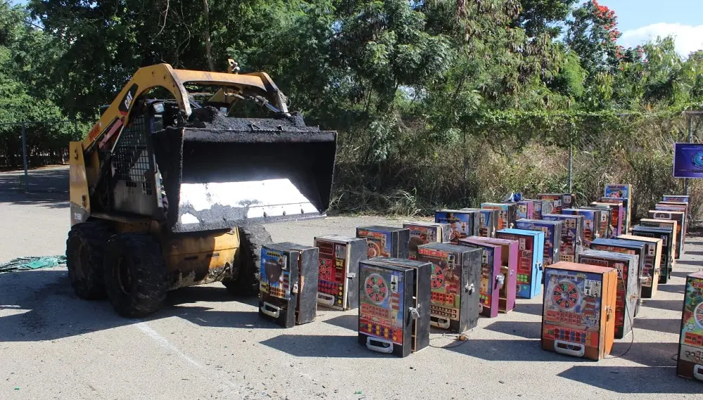 La directora del departamento responsable, fiscal Merary Guzmán, informó que durante los operativos en colmados, cafeterías, billares, bancas de loterías y otros comercios no autorizados para operar máquinas tragamonedas, se incautaron de decenas de máquinas de juego, con sus respectivas tarjetas o software, las cuales fueron destruidas.