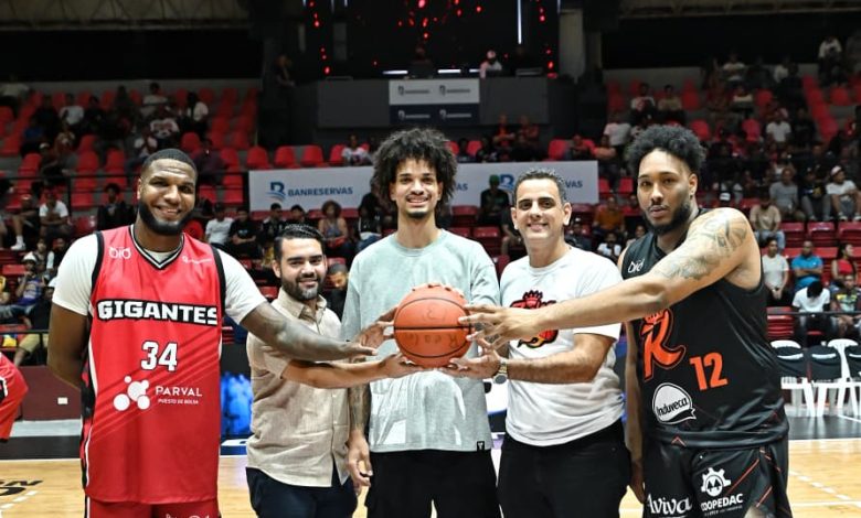 Previo a iniciar el tercer tiempo el destacado jugador de la NBA y de los campeones del club San Sebastián de Moca Anderson García realizó el saque de honor