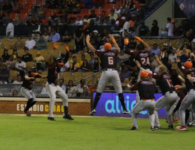 Los Gigantes anotaron la quinta carrera en la octava entrada en las piernas de Moisés Sierra quien negoció boleto avanzó a segunda por wild pitch, Peter OBrien fue golpeado, Oneil Cruz se ponchó, Carlos Paulino ligó hit al jardín derecho llenándose las bases y Abiatal Avelino remolcó a Sierra con metrallazo al left.