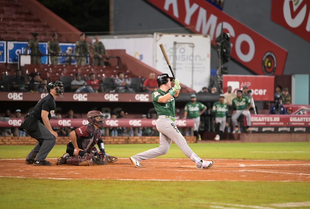 Los mejores al bate por los Gigantes del Cibao Leury García dos sencillos, y Deyvison de los Santos, Carlos Franco, Diego Hernández, Pablo Reyes, y Julio Carreras un hit per capita.