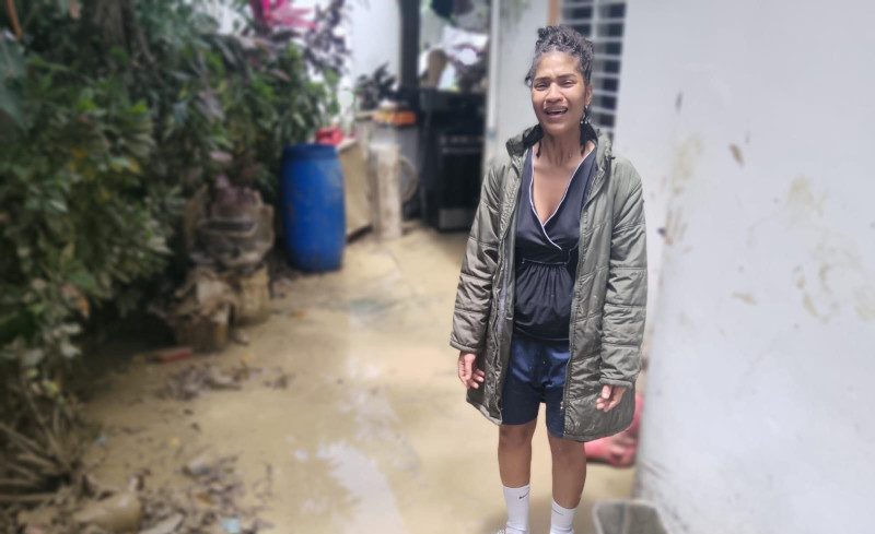 Perla Maciel, madre soltera residente en el kilómetro 14 de Camú, relató con la voz entrecortada cómo estuvo a punto de morir junto a sus dos hijas cuando las aguas irrumpieron violentamente en su vivienda durante la madrugada.
