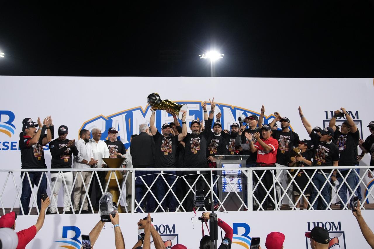 SANTO DOMINGO.- Los Leones del Escogido vencieron este martes por blanqueada 1-0 a los Toros del Este en el estadio Quisqueya Juan Marichal, de Santo Domingo, para coronarse campeones de la Liga de Béisbol Profesional de la República Dominicana (Lidom).