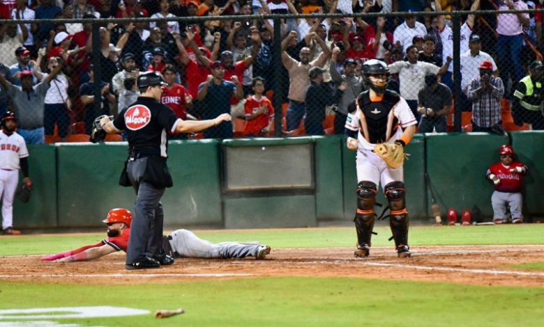 En el décimo primer episodio, los visitantes tenían corredores en primera y segunda con un out, y Erik González conectó rodado por el campocorto, pintado para doble matanza, pero un error en tiro del intermedista Rafael Lantigua permitió que Michael De la Cruz entrara con la de la ventaja.