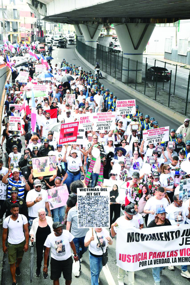 SANTO DOMINGO.- Diferente a otras marchas pacíficas, la protesta convocada por el Movimiento Justicia Jet Set, que se llevó a cabo ayer, discurrió entre duelo, dolor y sed de justicia a favor de los fallecidos el pasado 8 de abril de 2025 en la tragedia del club nocturno.
