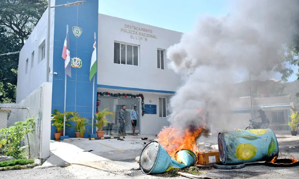 El Limón. Una ola de disturbios, destrucción y furia colectiva estalló este domingo en el distrito municipal El Limón de Villa González, luego de la muerte del joven Miguel Ángel Santos, conocido como Papucho, presuntamente atropellado por una patrulla policial.