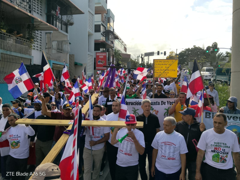 Los participantes, portando cruces y banderas dominicanas, denunciaron lo que consideran una falta de claridad por parte de las autoridades en torno a los proyectos extractivos.